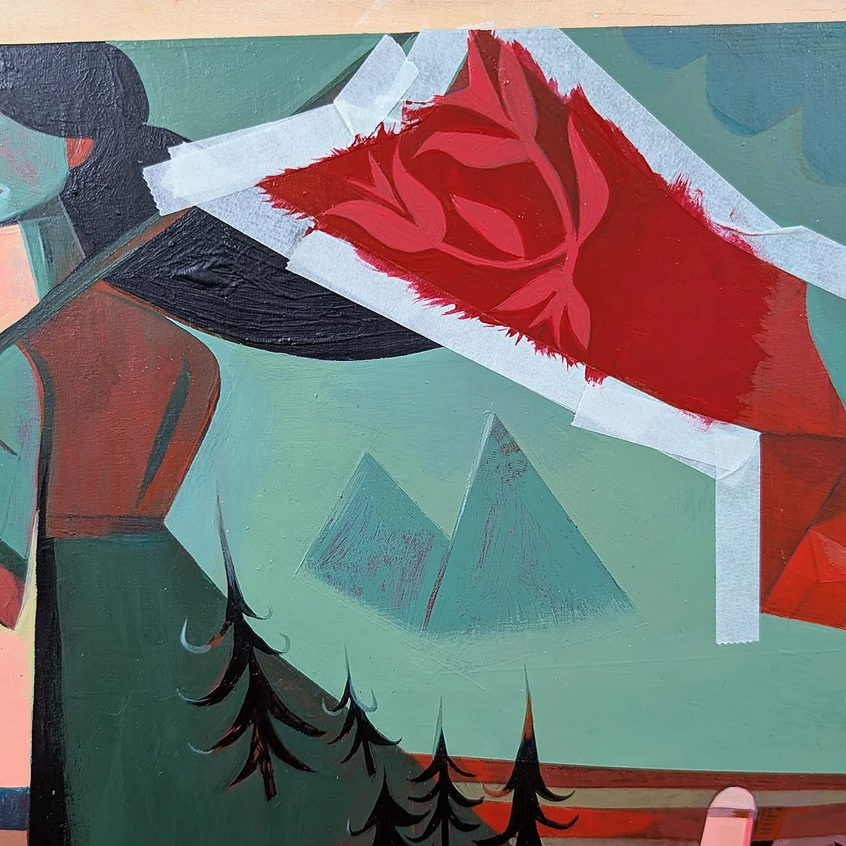 This painting pays homage to the real folk struggling to keep heads above water throughout Appalachia. The hero in this specific story is represented by a beloved mother of two, a teacher, and a social worker who takes care of the folks in her community as well as her own household.